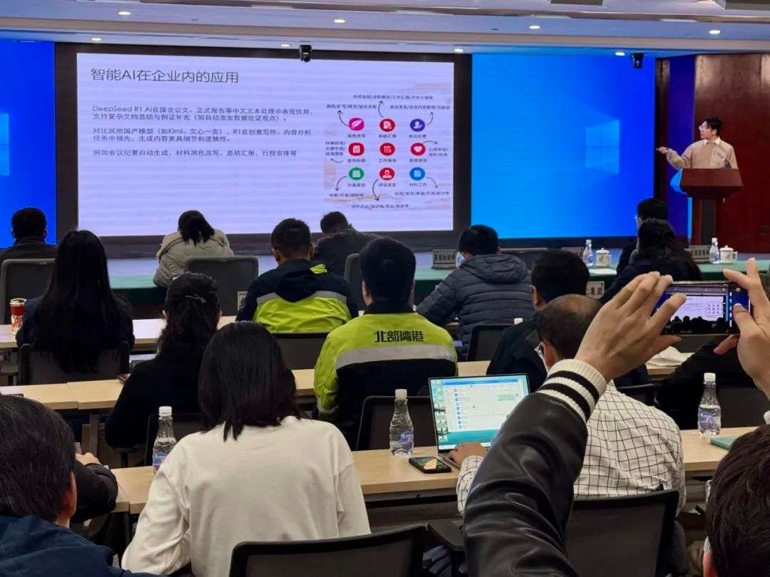 “原來AI還能這么用!”“DeepSeek是有溫度的港口工程師助手”2月18日下午,廣西北港物流有限公司組織的“爭當(dāng)新質(zhì)賦能先鋒”首期公開培訓(xùn)課暨“AI+陸海新通道”職工沙龍活動(dòng)上,現(xiàn)場不時(shí)傳出陣陣驚嘆與掌聲。來自北部灣港集團(tuán)二級(jí)子公司、西部陸海新通道黨建聯(lián)建成員單位共同參與培訓(xùn)和沙龍討論,本次活動(dòng)是西部陸海新通道黨建聯(lián)盟2025年首場公開課,也是以集團(tuán)公司五屆二次職代會(huì)提出的“新質(zhì)賦能”發(fā)展理念為題的首期公開課。